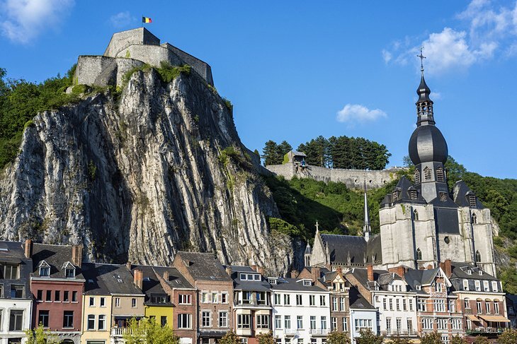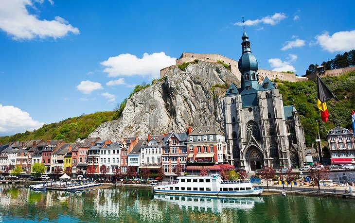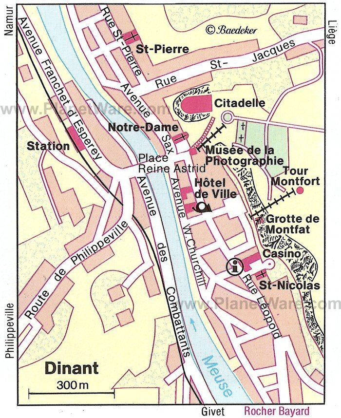 나뮈르(Namur)에서 남쪽으로 약 28km 떨어진 디난트는 벨기에 콘드로즈 지역에서 두 번째로 큰 마을이며 아르덴에서 가장 중요한 관광 중심지 중 하나입니다. 강력한 성채에 의해 왕관을 쓴, 가파른 석회암 바위 아래 어퍼뮤즈 계곡의 쾌적한 위치 덕분에, 디넌트는 매우 활기찬 관광 휴양지가 되었고, 특히 주말에는 유람선과 카누 타는 사람들로 북적거렸습니다.