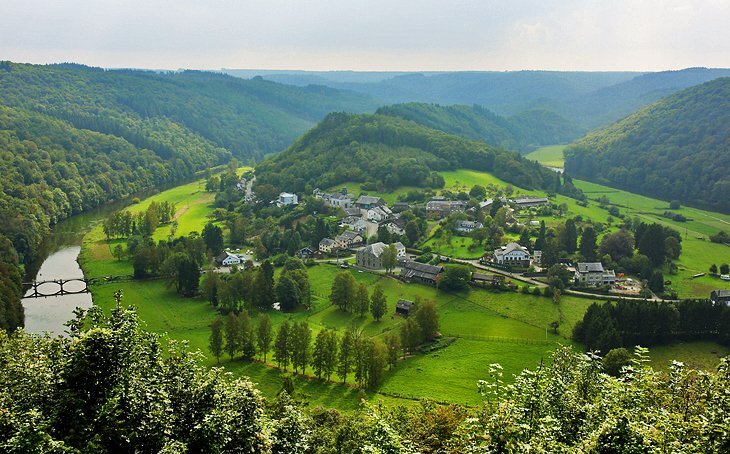 나뮈르: 인기 명소, 관광지, 호텔, 관광 명소 BEST 15, 나뮈르(Namur)에서 남쪽으로 113km 떨어진 세모아 계곡의 가파른 옆구리는 때때로 강가에 너무 가까이 접근하여 길이 가장 높은 경우가 많으며, 이곳의 여행은 경치의 가장 좋은 부분을 보기 위해 도보나 배로 하는 것이 가장 좋습니다. 더 큰 마을들 중 많은 곳은 강 위 높은 아르덴의 고원에 있습니다. 길을 따라가는 주요 장소로는 오래된 성과 교회가 있는 자모인, 치니, 그리고 강의 상류 쪽에 자리한 플로렌빌 등이 있습니다.