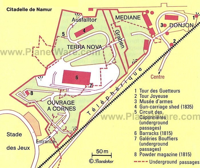 도시 위에 있는 나뮈르(Namur)의 인상적인 요새는 유럽에서 가장 강력한 요새 중 하나입니다. 일찍이 로마 시대에는 삼브레와 무세 사이의 바위투성이의 외벽이 요새화되어 있었기 때문에 나뮈르(Namur) 백작이 이곳을 그들의 성의 터전으로 선택한 것은 놀랄 일이 아닙니다. 그곳은 막사, 성벽, 지하 터널이 있어 탐험하기에 아주 좋은 곳입니다.