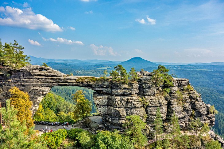 사암산맥, 암석 미로, 깊은 계곡과 협곡은 보헤미안 스위스를 이 나라에서 가장 놀라운 자연 여행지로 만듭니다. 이 공원은 높이 16m, 폭 27m의 유럽에서 가장 큰 사암 바위 아치인 프라비카 브라나가 있는 곳으로 가장 잘 알려져 있습니다.