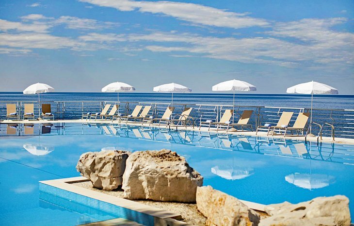 두브로브니크 소재 관광명소 & 인기명소 추천 BEST 15, 장식은 현대적인 고급스러우며, 그라운드에는 올리브나무, 소나무, 로즈마리, 올레안더 등이 심어져 아름답고 향기롭습니다. 이곳의 편의시설로는 식당과 웰니스 센터, 실내 수영장이 있는 스파, 욕조 2개, 찜질방과 사우나가 있습니다. 야외 수영장 몇 곳, 바다 접근성, 스쿠버 다이빙 센터도 현장에 있습니다.