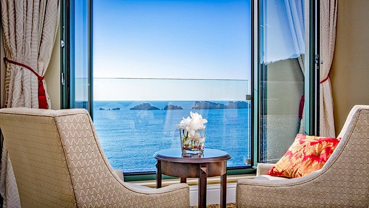 두브로브니크 호텔(Hotel Dubrovnik Palace)은 올드타운에서 불과 몇 마일 떨어진 라파드 반도의 바다 바로 위에 있는 호화로운 재산입니다. 방, 스위트룸, 공공장소에서 바라본 경치는 꽤 장관입니다. 그들은 등대가 있는 작은 들쭉날쭉한 그레베니 섬들을 내다봅니다. 또한, 그 호텔은 서쪽을 향하기 때문에 당신은 놀라운 일몰 경치를 볼 수 있습니다.