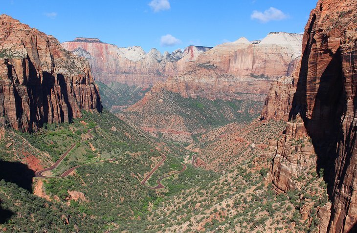 자이언 국립공원 은 가장 뛰어난 곳 중 하나이며 특히 하이킹 코스 에 관심이 많습니다 . 우뚝 솟은 절벽, 폭포, 계곡을 가로지르는 강이 있어 미국에서 가장 많이 찾는 공원 중 하나입니다.