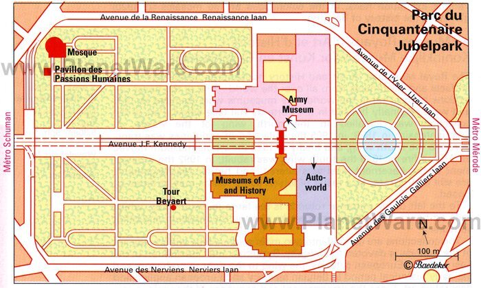 그것의 중심축은 기념비적인 팔레 드 신칸테나르의 두 날개로 1905년 브뤼셀의 가장 흥미로운 박물관 중 두 곳인 프랑스 건축가 찰스 지로가 디자인한 거대한 승리의 아치로 연결되어 있습니다.