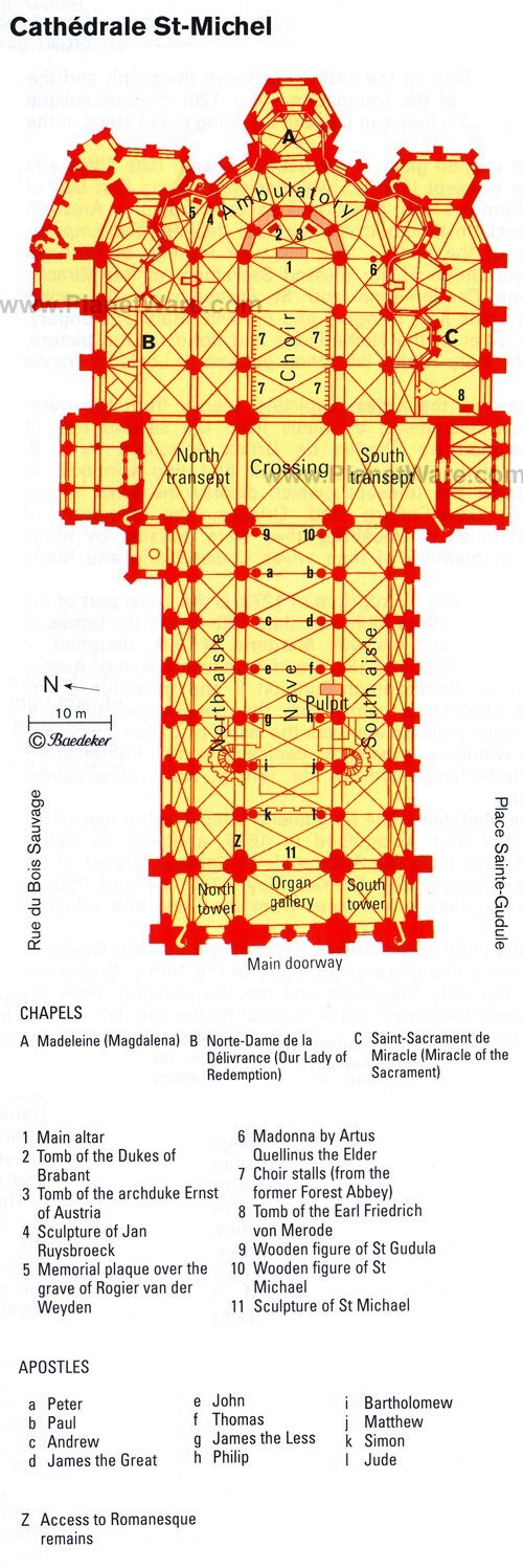 아름답게 비례한 실내(가로 108m, 세로 50m)는 호화롭게 꾸며져 있으며 베르나르 반 올리가 만든 몇 가지 뛰어난 스테인드글라스 창문이 자리잡고 있습니다.