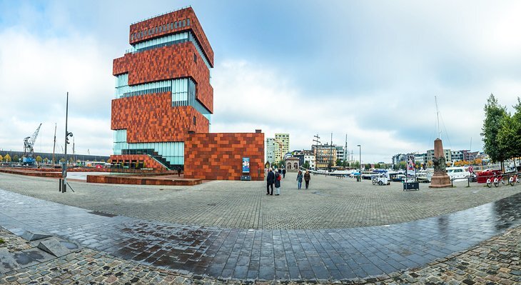앤트워프의 시립 박물관은 얼룩덜룩한 돌과 파도 모양의 유리 판넬의 기하학적 구성을 특징으로 하는 현대 건축의 좋은 예에 소장되어 있습니다. 이 10층짜리 건물은 어린이의 블록 퍼즐을 닮았고, 이전 한자동 창고 터에 항구가 내려다보입니다.