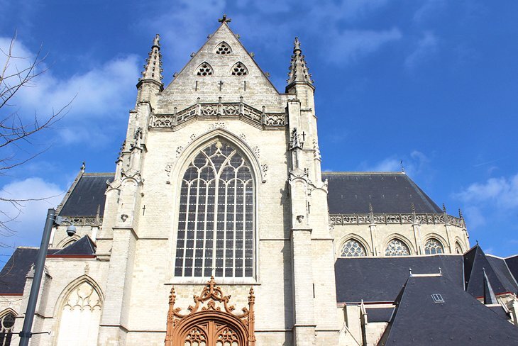 타운홀 뒤편에는 1841년에 지어진 온제-리브-브루베케르크의 탑이 솟아 있으며, 금빛 돔과 6미터 높이의 메리 동상이 있습니다. 바로 뒤로는 1238년에 성읍 후원 교회인 신트-니클라스케르크(Sint-Niklaaskerk)가 봉헌되어 16세기에 여러 차례 확장되었습니다.