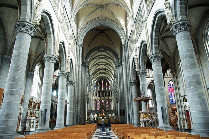 내부에서는 전쟁의 폭격에도 살아남은 몇몇 예술품들을 볼 수 있습니다. 특히 교회는 놋쇠 글씨체(약 1600년경)와 전통적으로 기적적인 힘을 지녔다고 여겨지는 온제-리브-브루-반 투인의 그림이 자리잡고 있습니다.