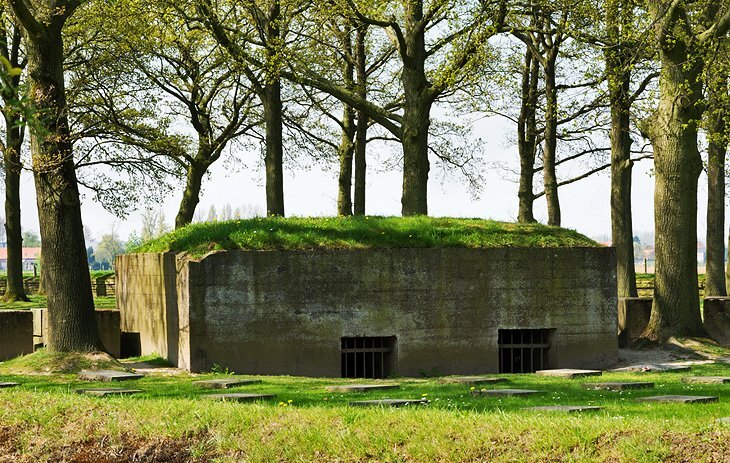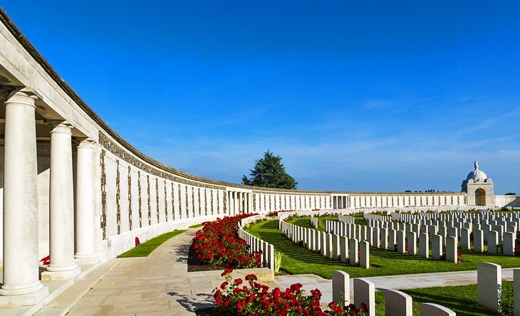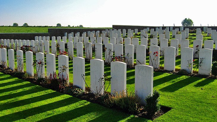 Ypres에서 북동쪽으로 약 12km 떨어진 Nieuwe-Molden의 햄릿 근처에는 Flanders에서 가장 큰 영국 전쟁 공동묘지가 있습니다. 타이네 코트 공동묘지는 레지날드 블롬필드 경이 1917년 8월 16일 이후 거의 12,000개의 전쟁 묘지와 35,000명의 실종 장병들을 기리는 기념비가 마련되었습니다. 그 장소는 이전의 전쟁터에서 가장 잘 보이는 곳 중 하나입니다.