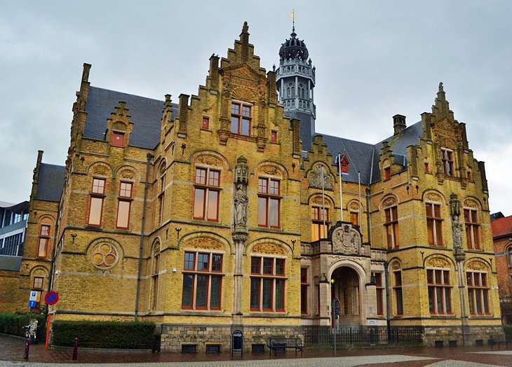 벨기에 이프르(이퍼르) 관광명소 & 여행코스 TOP12, 남쪽의 라켄할레 맞은편, 붐가르드스트라트 모퉁이에는 니에우 벨레스후이스(고기 홀)가 서 있는데, 1277년으로 거슬러 올라가면 1947년까지 토요일마다 고기가 판매되었습니다. 왼쪽의 그로테 마크트 북쪽 끝에는 게이블에 나타난 일곱 가지 흉악이 있는 카셀리예게부우(옛 마을회관)가 있습니다.