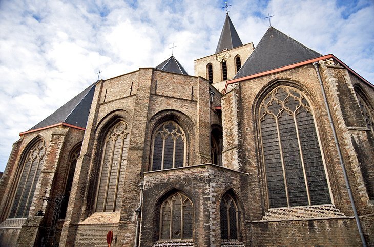 여호와의 교회에서 힐리게 게스트라트의 짧은 거리를 타고 1834년 이래 브뤼헤에서 가장 오래된 교구 교회이자 성당인 신트살바토레스카테드라알로 가십시오. 원래 10세기에 세워졌으며, 현재 건물의 대부분은 12세기와 13세기로 거슬러 올라갑니다. 성벽처럼 높이 99m의 서탑은 1116~1227년 사이 하단 로마네스크 부분, 1183~1228년 벽돌 부분 등 여러 단계로 축조되었습니다.