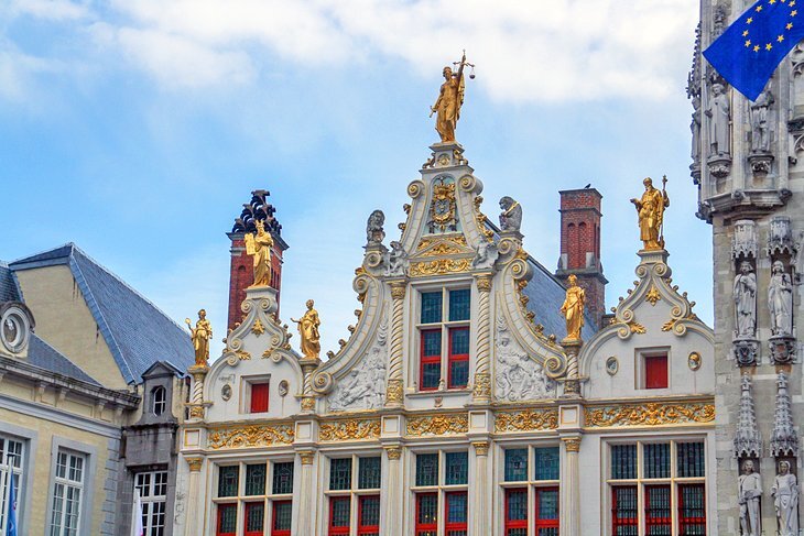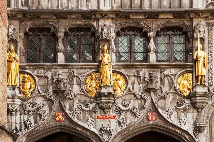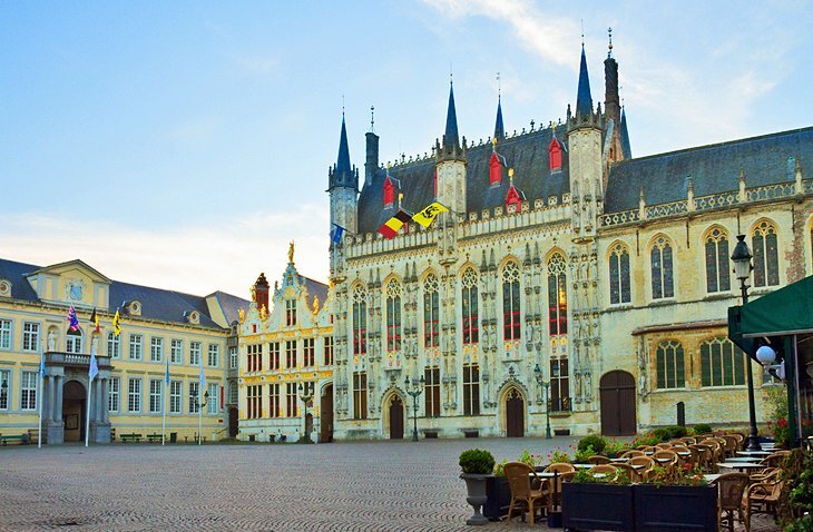 부르고뉴 동남쪽에는 벨기에에서 가장 오래된 건물 중 하나인 브루게스 타운홀(Stadhuis)이 1376년에서 1420년 사이에 건설되었습니다. 섬세한 고딕 양식의 건물 전면은 높이 솟은 필러스터로, 그 중 3개는 팔각형의 포탑으로 되어 있고, 높은 고딕 아치창으로 구분되어 있습니다.