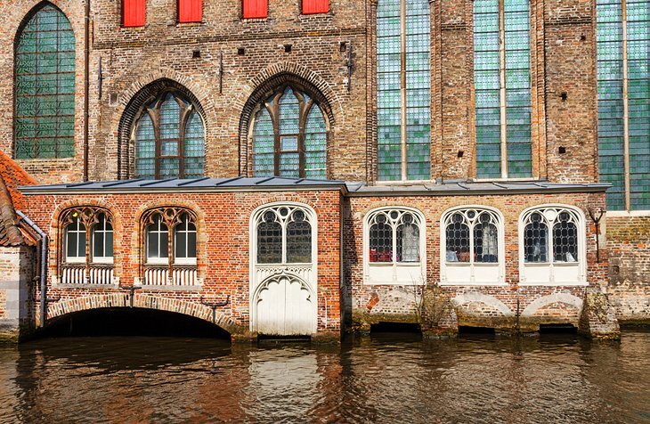 성당 서쪽 문 바로 맞은편에 브뤼헤에서 가장 오래된 건물인 신트 얀스피타알(Stat)이 서 있습니다. John's Hospital)은 12세기에 설립되었습니다. 마리아스트라트 입구의 왼쪽에 있는 브릿크업된 문 너머에 있는 이 고막은 1270년의 날짜를 가진 성모 마리아를 보여주는 안도감으로 장식되어 있습니다. 고대 건물 내부, 한때 병동이었던 곳에서, 문서와 수술 도구들의 전시회가 병원의 역사를 도표로 장식합니다. 병동에 인접한 낡은 조제실도 보존되어 있습니다.