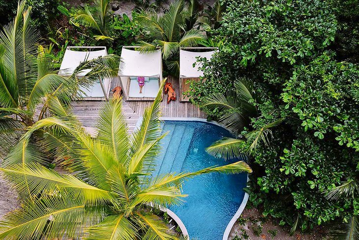 섬의 지속적인 복원 중에 수확한 현지 재료로 건설된 11개의 개방형 전용 빌라는 코코넛 야자수가 가득한 아름다운 해변 주변을 둘러싸고 있습니다. 세련된 비치 시크는 많은 질감 요소와 천연 소재를 통합한 장식을 가장 잘 설명합니다. 대형 데크의 플런지 풀, 그물 침대, 깊은 욕조가 전형적인 특징이며 문은 야외로 들어갈 수 있도록 뒤로 접힙니다.