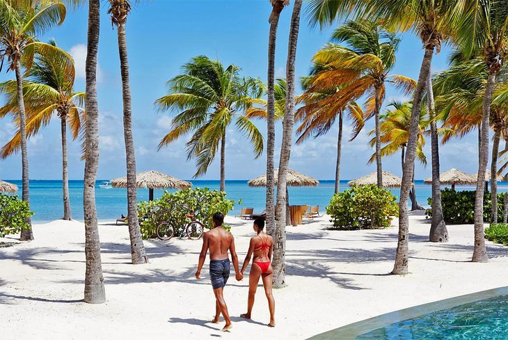 눈부신 해변으로 둘러싸인 안티구아의 야자수가 우거진 개인 섬에 위치한 Jumby Bay는 열대의 우아함이 최고입니다. 카리브해 최고의 럭셔리 올 인클루시브 리조트 중 하나인 Jumby Bay는 5성급 리조트에서 기대되는 모든 사치와 현대적인 편의를 제공하지만 평화로운 낙원에 있습니다. 섬 전체에 차가 다니지 않지만 자전거를 타고 탐험하고 여유로운 삶의 속도를 만끽할 수 있습니다.