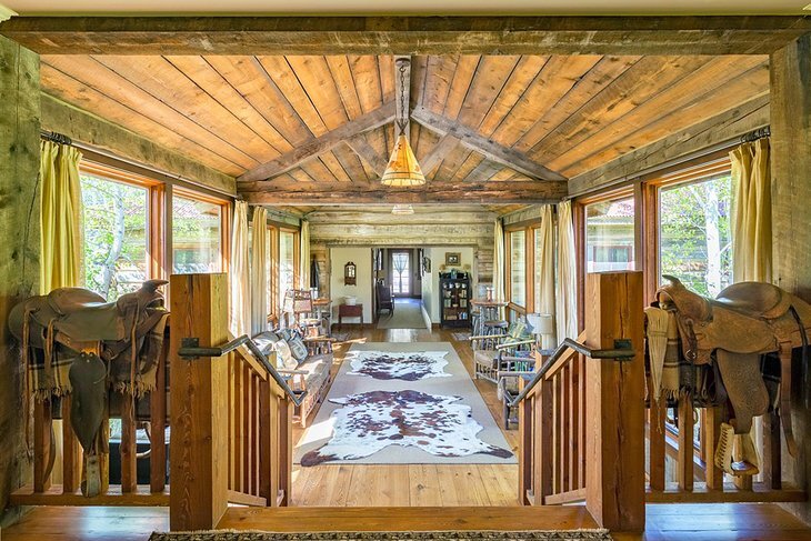 숙박의 경우 메인 롯지의 매력적인 객실을 예약하거나 6,600에이커 부지에 흩어져 있는 많은 캐빈, 주택 또는 글램핑 텐트 중 하나를 선택할 수 있습니다. 장식은 전체적으로 서양식입니다. 여기 음식은 훌륭하고 저녁 식사는 밤마다 바뀌는 멀티 코스 요리입니다.