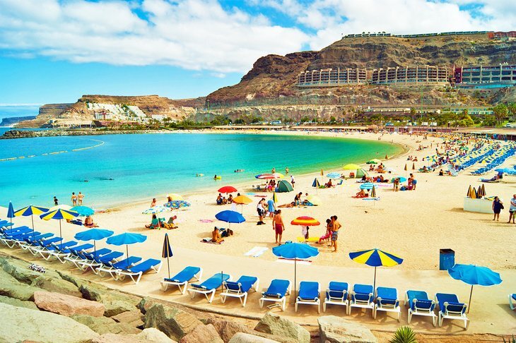 카나리아 제도에서 가장 큰 그란 카나리아는 대부분의 남부 해안을 따라 늘어선 황금빛 모래 해변으로 가장 잘 알려져 있습니다. 플라야 라스 칸테라스( Playa Las Canteras )는 화산암의 자연 방파제에 의해 보호되는 잔잔한 물로 가족들에게 인기 있는 라스 팔마스(Las Palmas)의 수도에 있습니다.