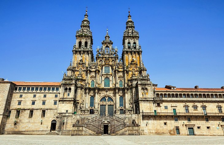 산티아고의 장엄한 대성당(세인트 제임스)은 성자의 유물을 보관하고 기리기 위해 지어졌으며 중세부터 순례자들의 목표였으며 유명한 산티아고 순례길을 완성한 절정입니다.