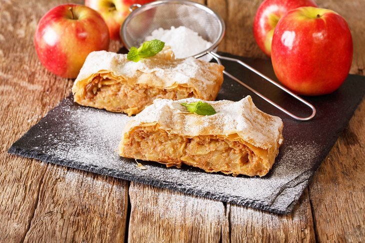 카페에서, 단 것을 좋아한다면 오스트리아의 Apfelstrudel(사과 슈투델)과 비엔나의 유명한 Sachertorte 초콜릿 케이크(살구 잼 층으로 채워짐) 두 가지를 꼭 먹어봐야 합니다.