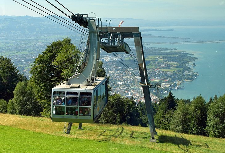 Bregenz의 바로 동쪽에 있으며 마을을 지배하는 1,064미터 높이의 Pfänder가 있습니다. 판더반(Pfänderbahn) 케이블카를 타고 2km, 6분 거리의 정상 회담을 통해 접근할 수 있습니다. 또는 Bregenz에서 Hintermoos를 통해 가파른 보도를 통해 2시간 동안 트레킹할 수 있습니다. 이 곳은 보덴 호수와 독일인의 놀라운 전망을 위해 꼭 방문해야 할 곳입니다. 호숫가를 따라 자리 잡은 스위스 마을.