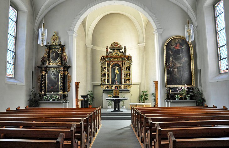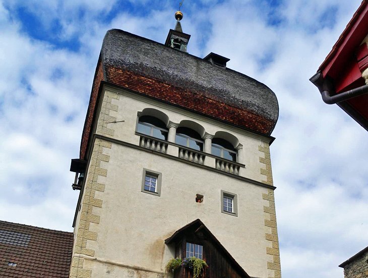 다른 어퍼 타운 하이라이트로는 1622년에 지어진 골조 건물인 올드 타운 홀 (Alte Rathaus); Deuringschlösschen , 1698년에 지어진 작은 궁전; 성 요셉 예배당 (18세기에 추가됨)이 있는 1636년 벽으로 둘러싸인 카푸친 수도원 및 교회 ; 그리고 St. Gallus 의 화려한 교구 교회 . 이 단순한 14세기 고딕 양식의 건축물은 1738년에 재건되었으며 풍부한 후기 바로크 양식과 로코코 양식의 실내 장식으로 유명합니다.