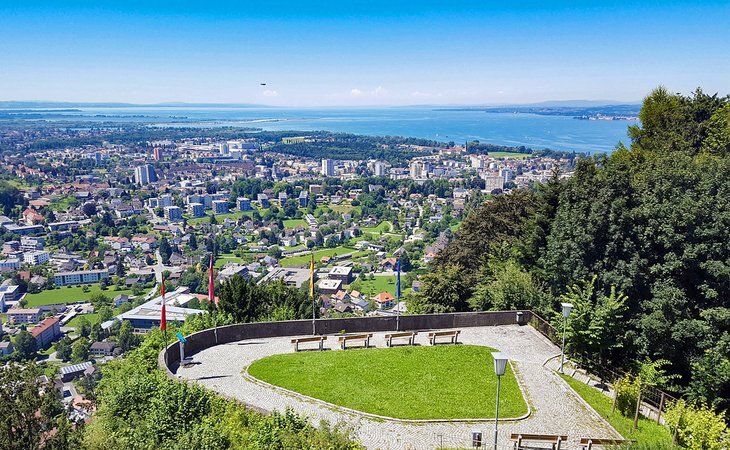 Bregenz에서 남쪽으로 차로 조금만 가면 600m 높이의 숲이 우거진 언덕인 Gebhardsberg가 나옵니다. 이 언덕은 많은 숲길로 인해 워커와 등산객들에게 인기가 높습니다. 1647년 스웨덴에 의해 파괴된 Burg Hohenbregenz의 폐허와 1900년경에 프레스코화가 추가된 18세기 순례 예배당은 탐험할 가치가 있습니다.