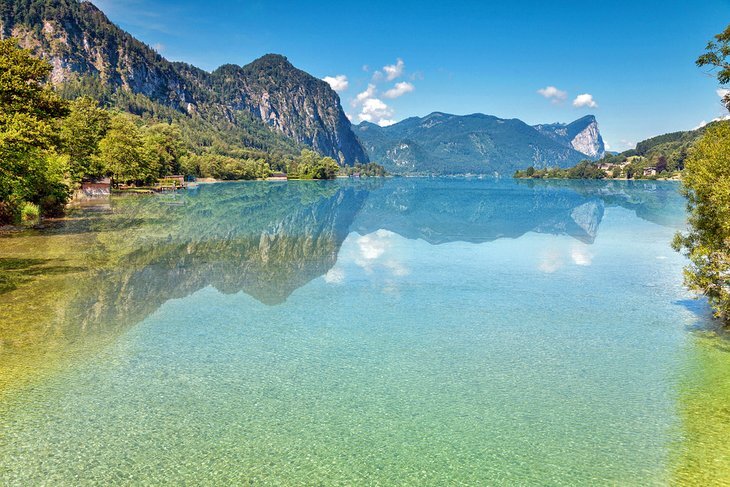 길이가 11km에 달하는 Mondsee는 잔잔한 푸른 바다가 있는 비교적 큰 호수입니다. 수영을 하는 사람들에게 운 좋게도 이곳은 이 지역에서 가장 따뜻한 호수 중 하나이며 여름 수온은 섭씨 27도(오스트리아 기준)는 매우 상쾌합니다.