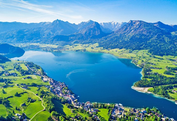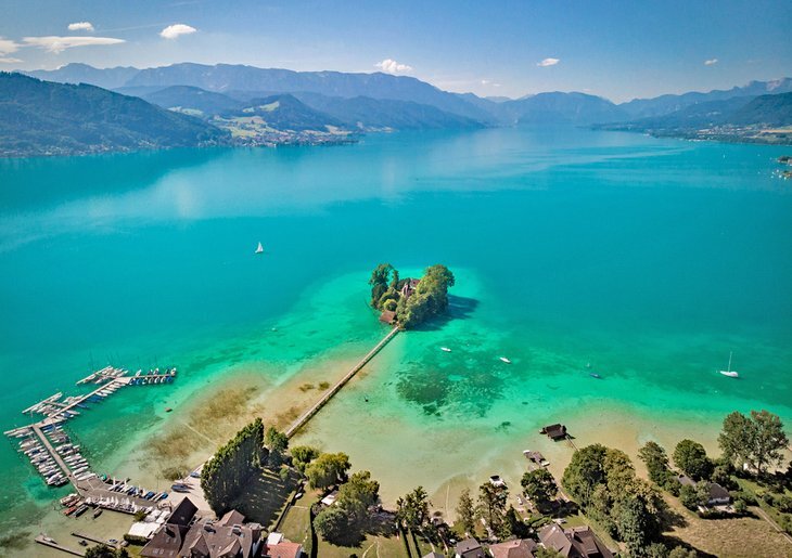 세인트 볼프강(St. Wolfgang) 및 세인트 길겐(St. Gilgen )과 같은 한적한 리조트 가 해안을 따라 늘어서 있으며 일부 리조트에는 보트로 도착하는 사람들을 위한 자체 부두가 있습니다.