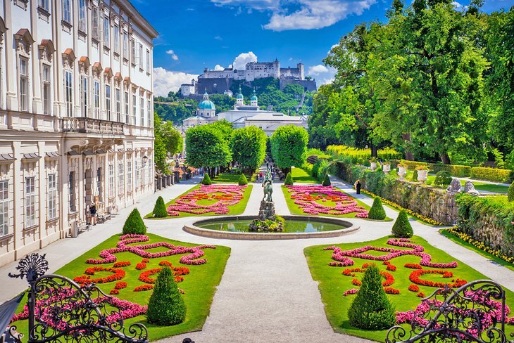 Schloss Mirabell ( Mirabell Palace ) 의 바로크 정원은 Sound of Music 에도 등장했으며 분수, 동상 및 계단식 조경을 감상하기 위해 부지를 산책하는 것은 오후를 보내는 완벽한 방법입니다.