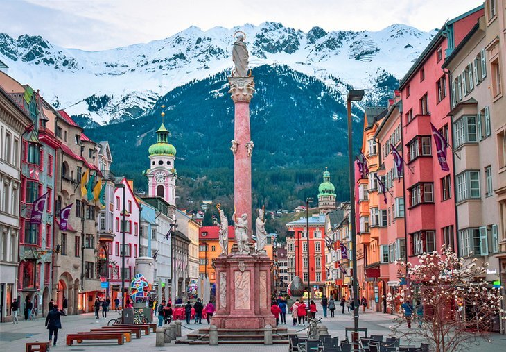 이 작은 도시를 탐험 하는 데 시간을 할애한다면 거리의 반원형 고리인 그라벤( Graben )으로 정의된 보행자 전용 지역인 구시가지( Old Town ) 에서 많은 역사와 사진 촬영을 발견하게 될 것입니다 . 아름다운 집들 중에서 관광객들은 소박한 중세 건물과 티롤 건축의 예, 화려한 바로크, 로코코 및 르네상스 영향을 포함하여 환상적인 다양한 스타일을 찾을 수 있습니다.