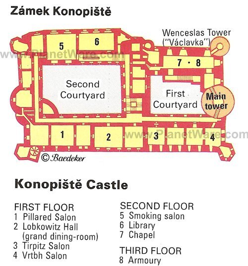 체코에서 가장 사랑스런 궁전 중 하나인 코노피스트 샤토는 프라하에서 남동쪽으로 50킬로미터 떨어진 곳에 있습니다. 13세기에 설립되어 18세기에 현재의 바로크 형식을 갖춘 이 뛰어난 프랑스식 사향은 때아닌 암살이 WWI를 시작했다는 평가를 받고 있는 오스트리아 대공 프란츠 페르디난트의 마지막 거주지로 유명합니다.