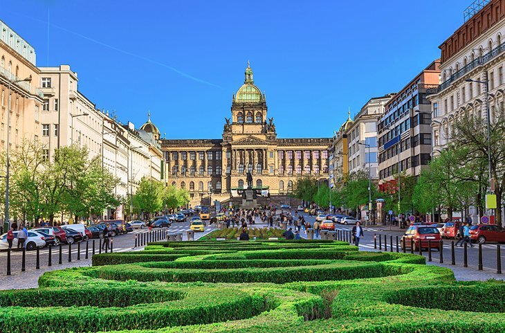 올드 타운 광장에서 걸어서 5분 거리에 뉴 타운 중심부의 위슬라스 광장이 자리 잡고 있습니다. 들리는 것처럼 새롭지는 않지만, 이 넓은 공공 공간은 14세기에 말 시장으로서 마련되었습니다. 오늘날, 그것은 퍼레이드, 축제, 그리고 때때로 데모를 위해 사용됩니다. 이곳은 호텔, 식당, 쇼핑, 유흥업소가 즐비한 인기 관광집니다.