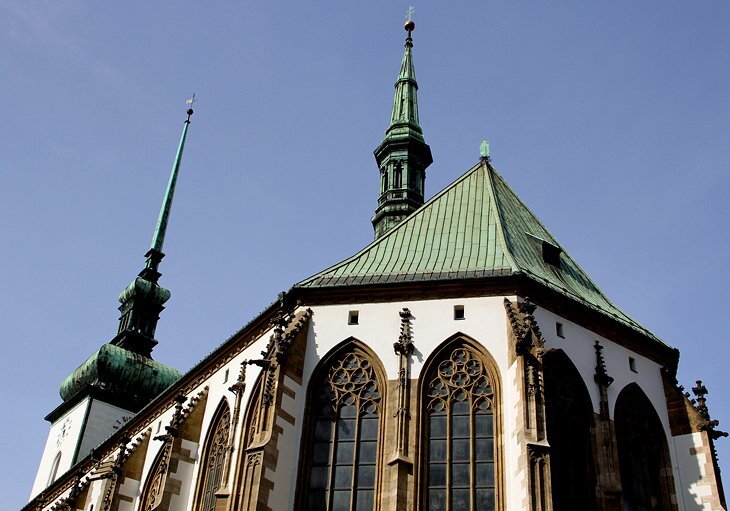 성당 뒤 베드로와 바울, 브르노의 다른 가장 중요한 종교 구조는 예쁜 14세기 성 제임스 교회(체코스코스텔 스바테호 자쿠바)입니다. 현재 중요한 건축물과 역사적 유물들로 인해 국립 문화 랜드마크인 이 교회는 오래된 고딕 양식 십자가상, 그리스도의 십자가상 중 하나와 많은 흥미로운 비석들을 포함한 16세기 초의 구호물들, 바로크식 장기를 특징으로 하고 있습니다.