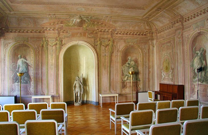 재미있는 일에는 영어 가이드 투어의 일환으로 성의 인상적인 인테리어를 탐험하고, 넓은 건물과 식당, 멋진 프레스코, 그리고 많은 가구들이 있는 궁전 건물과 같은 하이라이트를 즐기는 것이 포함됩니다. 이 성은 또한 음악 콘서트와 축제의 인상적인 배경을 만든다(자세한 내용은 아래 웹사이트를 참조하라).