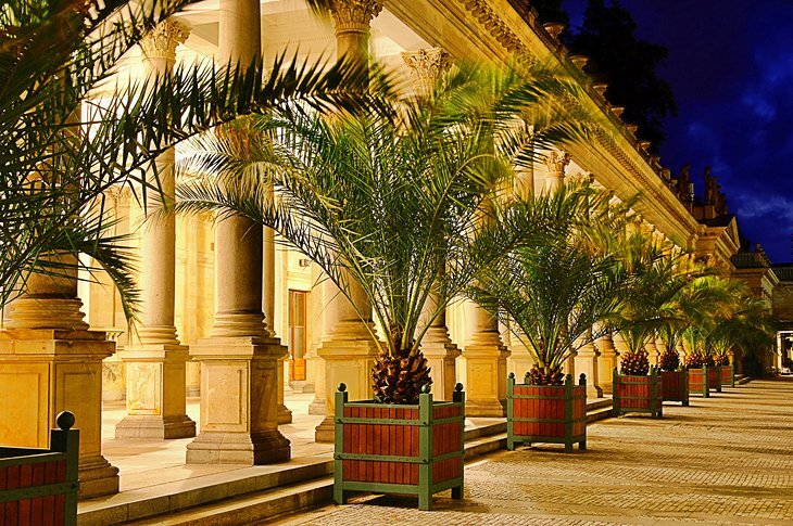 카를로비 바리스가 유럽의 대표적인 스파 여행지라는 위상에 대한 언급이 도처에 널려 있습니다. 그 도시의 풍부한 온천과의 연결고리는 많은 화려한 식민지들에서 특히 두드러집니다. 가장 매력적인 것 중 하나는 밀 콜론네이드입니다. 1881년에 지어진 이 건물은 길이가 132미터에 달하며, 한 해의 달을 대표하는 옥상 발터스트레이드를 따라 12개 등 5개의 샘과 수많은 조각품이 있는 지붕을 받치고 있는 124개의 코린트 기둥을 자랑합니다.