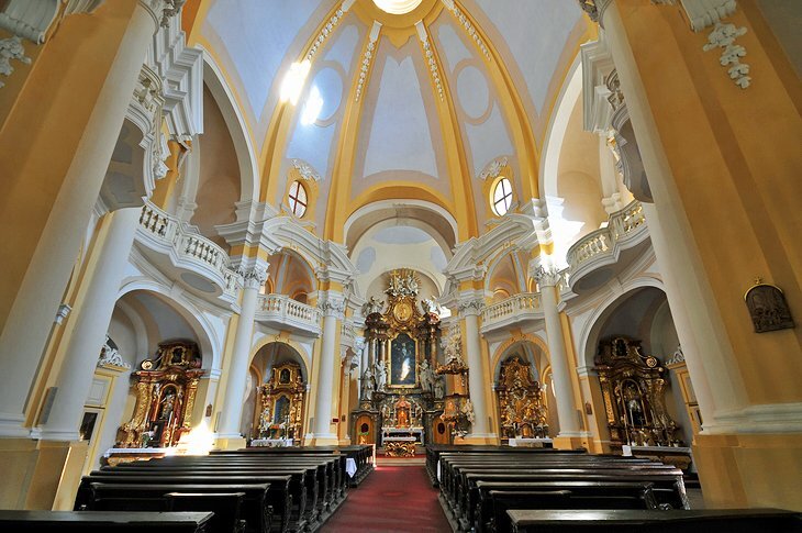 체코 카를로비 바리 최고 인기 관광 명소 BEST 11, 하이라이트는 훌륭한 제단 조각품, 다양한 정교한 바로크 성찬 조각품, 그리고 많은 중요한 종교적 유물들과 함께 고딕 양식의 마돈나 동상 등이 있습니다.