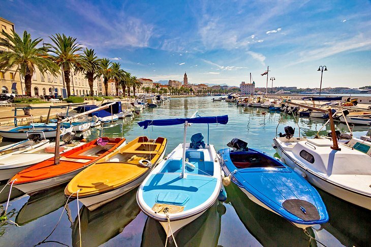 스플릿 항구의 형형색색의 보트