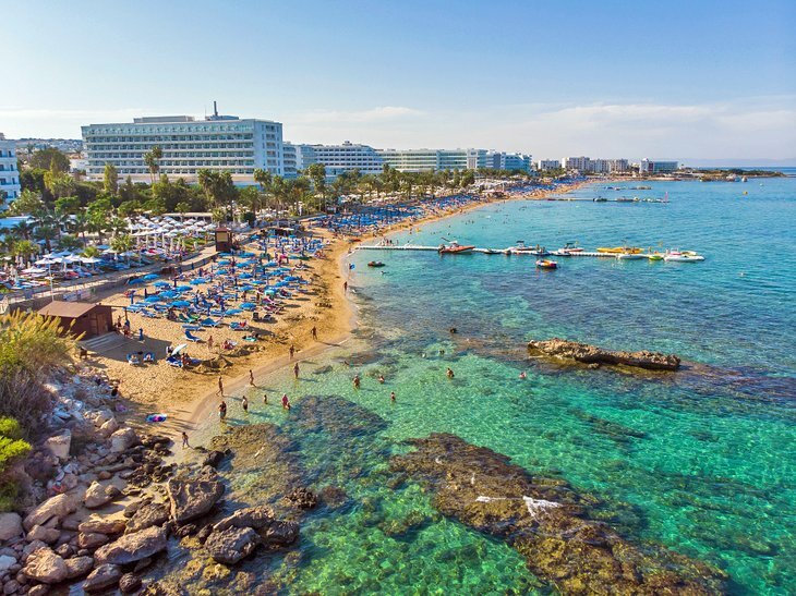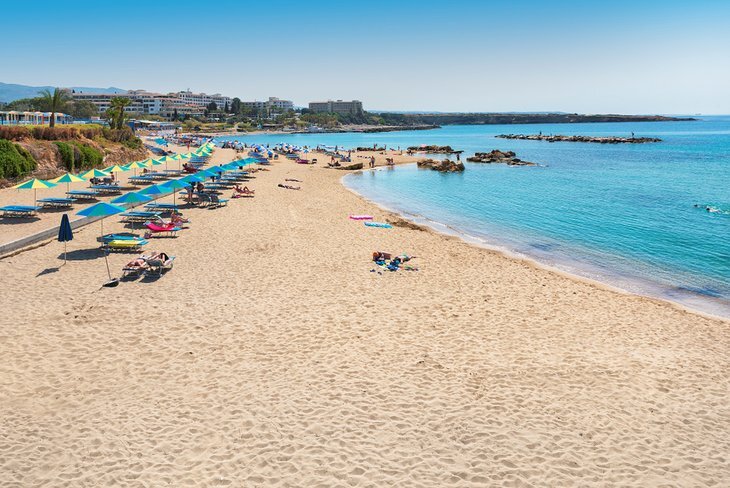 CNN이 선정한 키프로스 섬 최고의 해변 12곳 추천, 부드러운 금빛 모래에 선광과 렌트용 그늘이 줄지어 있고, 당직 인명구조원, 스노클링에 안성맞춤인 수정같이 맑은 터키옥수수가 있어 모든 시설을 갖추고 하루 종일 해변을 누비기에 손쉬운 곳입니다.
