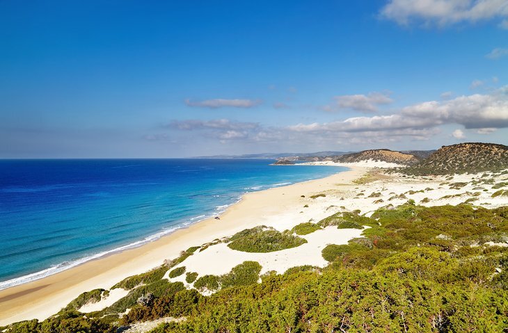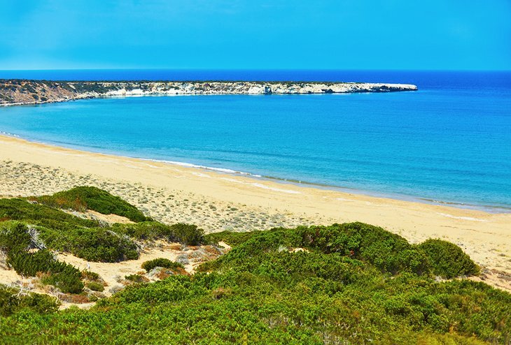 섬의 북쪽에 있는 카르파스 반도의 끝을 따라 이어지는 골든비치(일명 난고미만)는 이 섬에서 가장 아름답고, 손대지 않은 해안입니다.